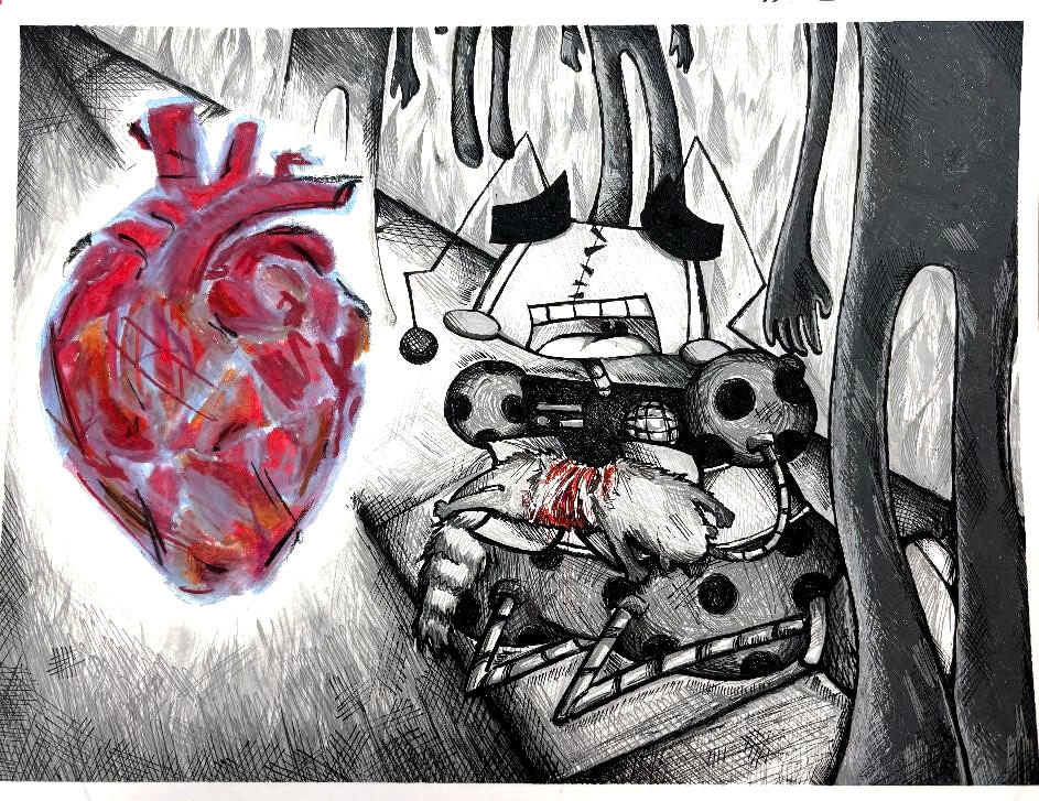"Oh, Roadkill" (Pen + Crayon) 9x12