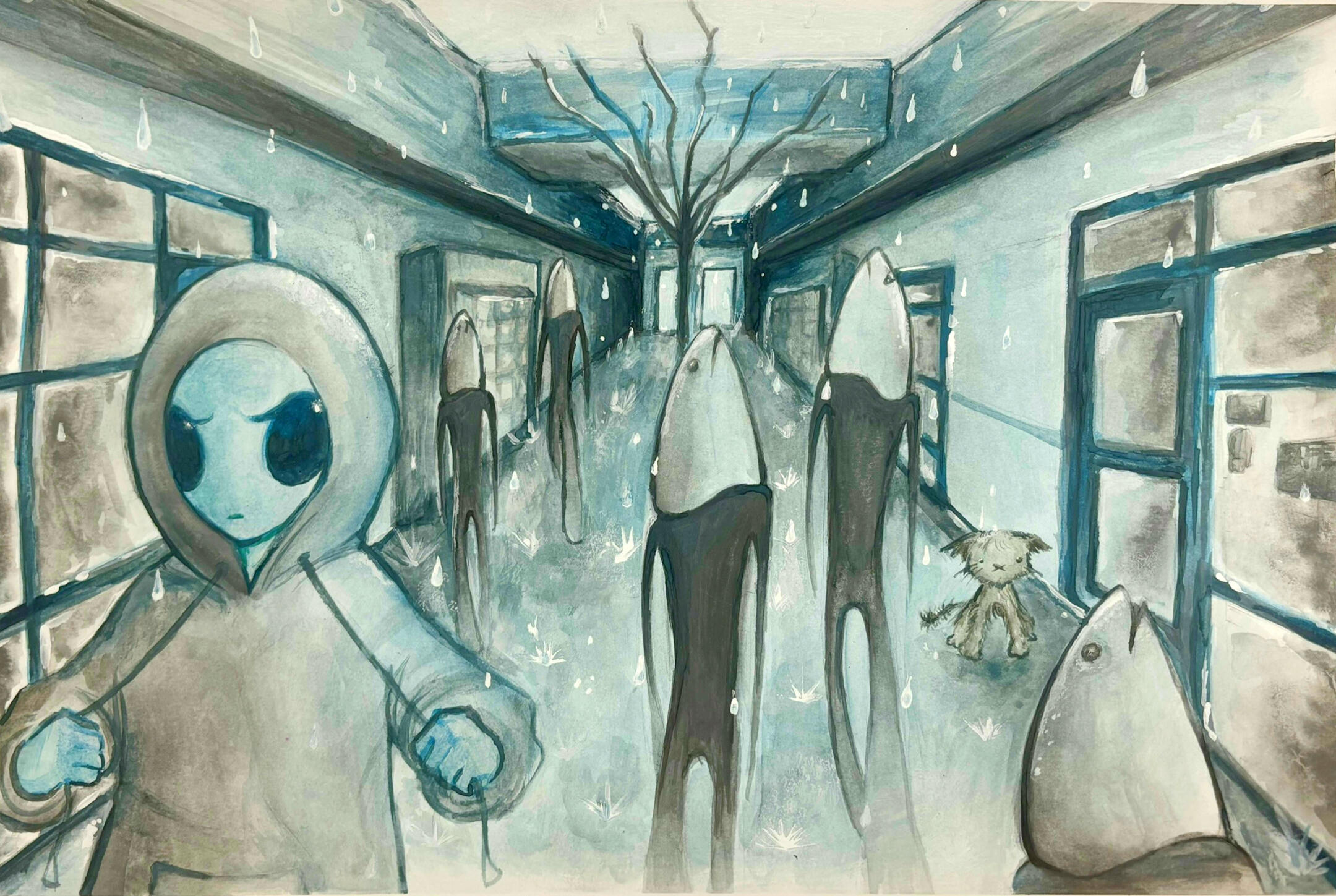 "Stranger Sea" (Watercolor + Acrylic) 11x17